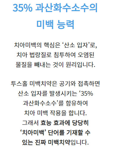 35%의 과산화수소수를 함유하여 효과가 좋다고 하네요!