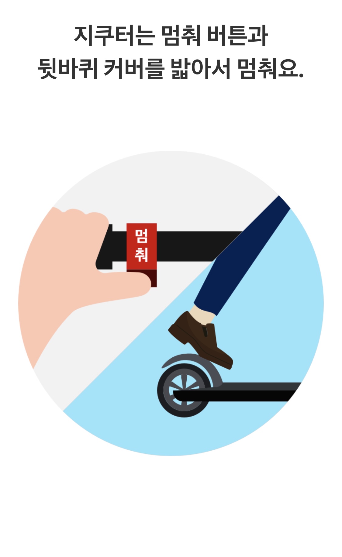 지쿠터는 멈춰버튼과 뒷바퀴 커버를 밟아서 멈춰요.