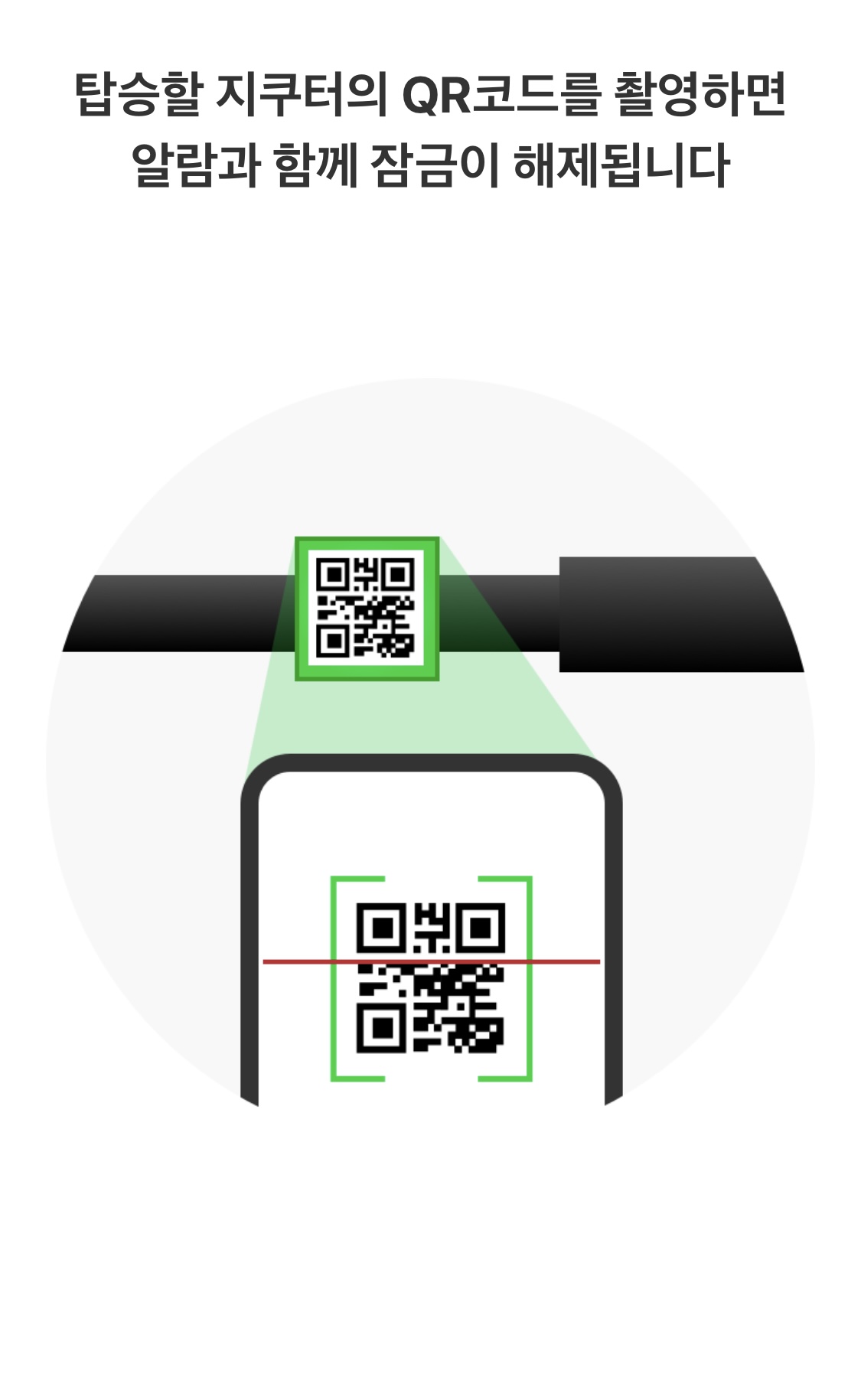 탑승할 지쿠터의 QR코드를 촬영하면 알람과 함께 잠금이 해제됩니다.