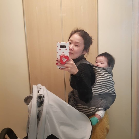 딸 소예양을 포대기에 안고 있는 사진을 인스타에 올리셨네요!