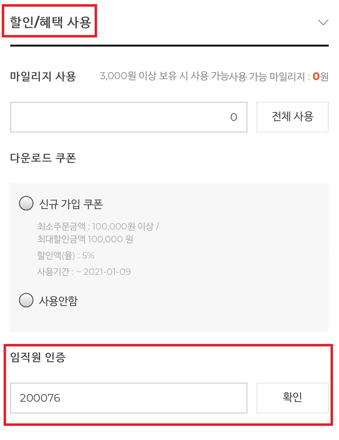 회원가입 하셔야 임직원 코드 입력하는 칸이 떠요