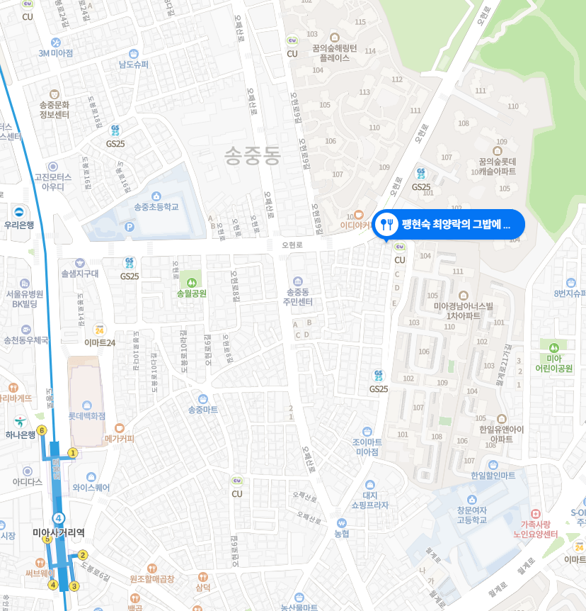 팽현숙 반찬가게는 서울 강북구 오패산로30길 75 에 위치하고 있습니다.