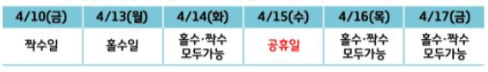 신청일은 출생연도 끝자리 수 기준 홀짝운영, 예시) 4/10(짝수일)=1968년생(짝수)