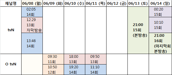 이번주 마지막회 전에 재방송을 보고 싶으시다면 아래 편성표 시간을 참고해주세요!