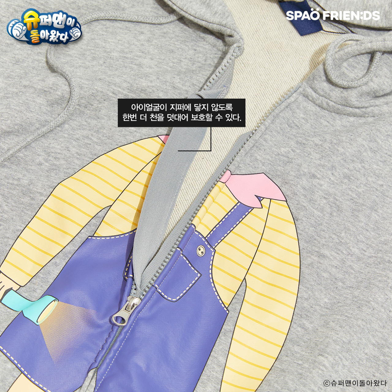 넘 센스있게 지퍼부분이 아이 얼굴과 목에 쓸리지 않도록 천으로 덧데어져 있습니다.