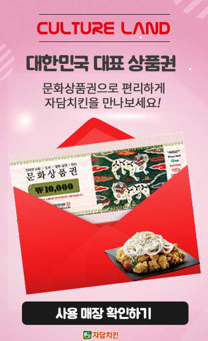 자담치킨 홈페이지에 들어가니 컬쳐랜드 문화상품권도 사용가능하다고 나오네요!