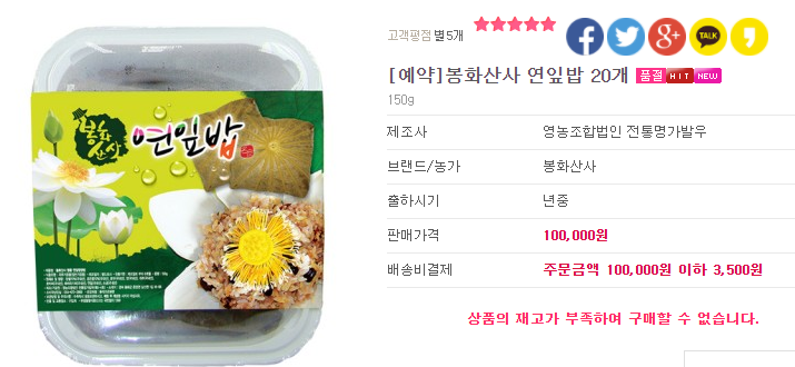 ▽▽▽▽ 봉화산사 연잎밥&조청 판매사이트 ▽▽▽▽