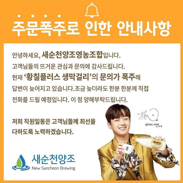 바로 영탁 막걸리 이후로 우리 찬원님이 광고하는 황칠막걸리가 오늘부터 판매된다고 합니다!
